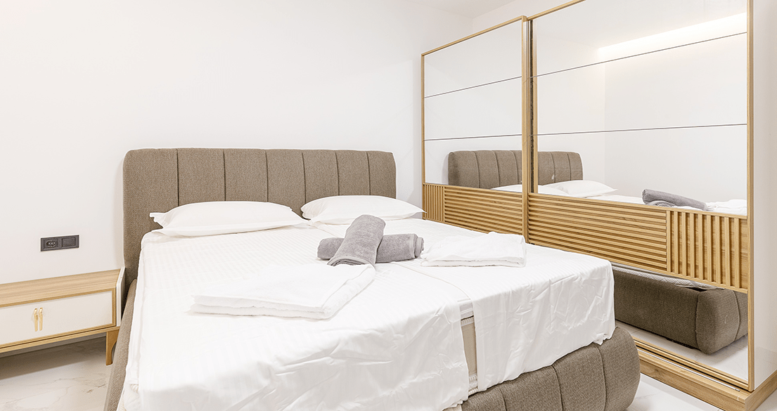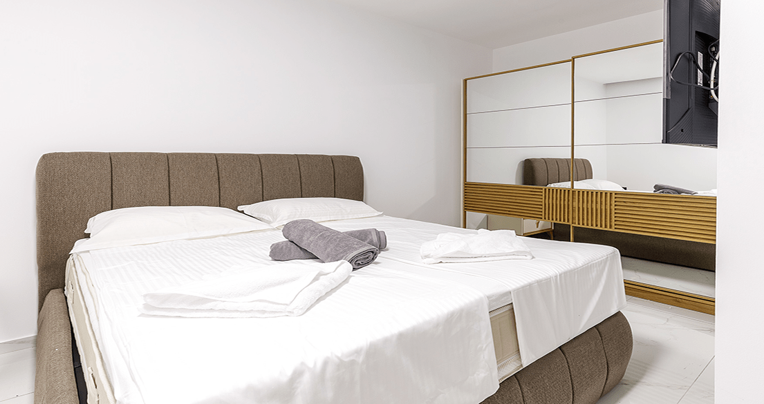 - Ground Floor: Spacious living room with smart TV, air conditioning, fully equipped kitchen with dining area, and a WC.
