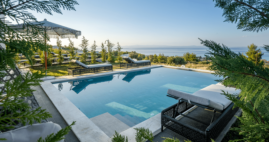 Beautiful two-story villas with basements, located in the prime spot of Kassandra Peninsula, Chalkidiki. Set within a large courtyard with a BBQ area, each villa features a private pool and parking, offering breathtaking panoramic views of the Aegean Sea and Toroneos Gulf.