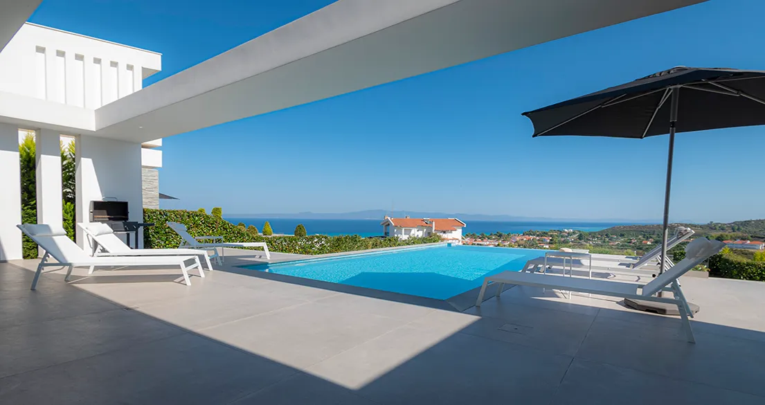 The villa is a beautiful, new three-story house with 5 bedrooms, located in the best area of the first peninsula of Kassandra, on the Halkidiki peninsula. The property has a large garden of 500 sq.m., a private pool, barbecue area, billiards, table tennis, electric massage chair, Starlink Wi-Fi, private covered parking, and an electric car charging station.